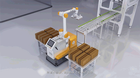 Visual Intelligent Positioning: With an integrated vision recognition system, the robot automatically identifies boxes on the conveyor and performs accurate picking without the need for precise physical guidance.