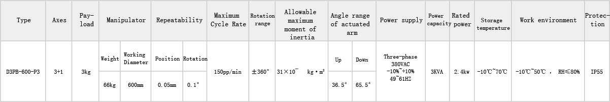 This classic high-speed parallel robot configuration features translational movement along the three-dimensional XYZ axes and rotation around the Z-axis. Combined with a high-precision machine vision system, it is suitable for high-speed production operations in industries such as food and pharmaceuticals, primarily used for the assembly, handling, and sorting of small, lightweight, and irregularly shaped materials.