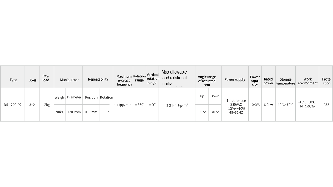 The 5-axis robot adds two parallel rotating axes based on the traditional three-axis parallel robot. One axis controls the horizontal rotation and the other axis controls the vertical rotation. The two intermediate axes are controlled by servo coupling, which has higher precision, faster speed and longer service life.