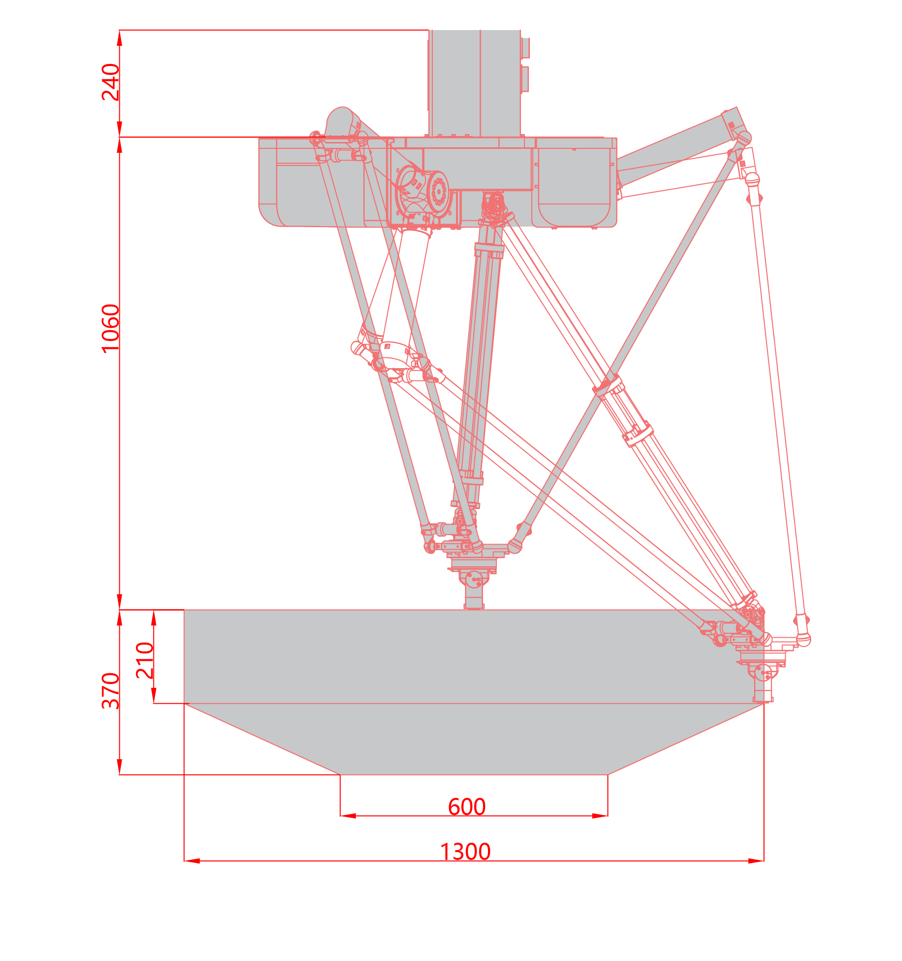 The 5-axis robot adds two parallel rotating axes based on the traditional three-axis parallel robot. One axis controls the horizontal rotation and the other axis controls the vertical rotation. The two intermediate axes are controlled by servo coupling, which has higher precision, faster speed and longer service life.
