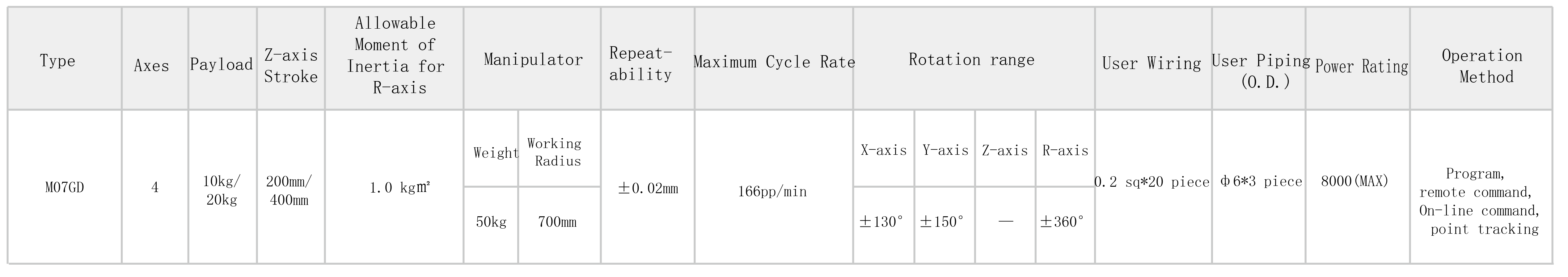 This series of industrial robots is a four-axis horizontal articulated robot. It features flexible motion, a compact structure, excellent dynamic performance, and high motion repeatability. The joints adopt a modular design and assembly, making installation and maintenance convenient, and can effectively replace light manual labor with payloads under 20 kg.